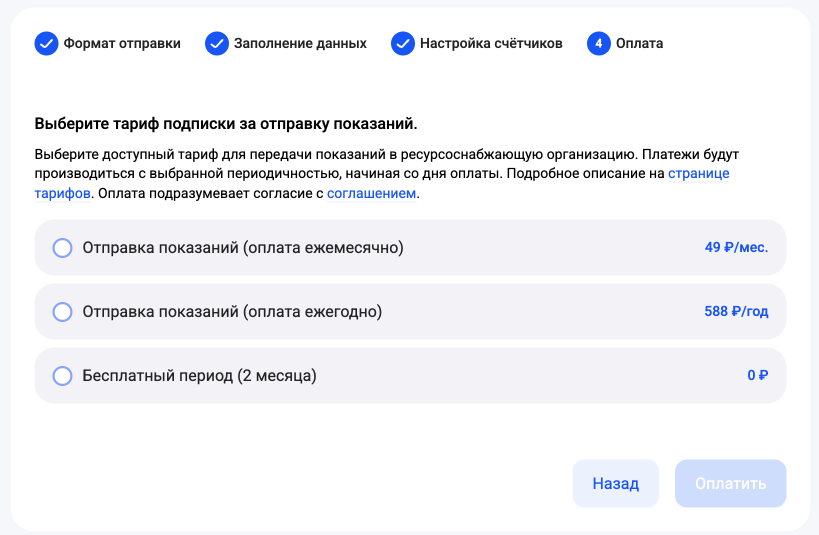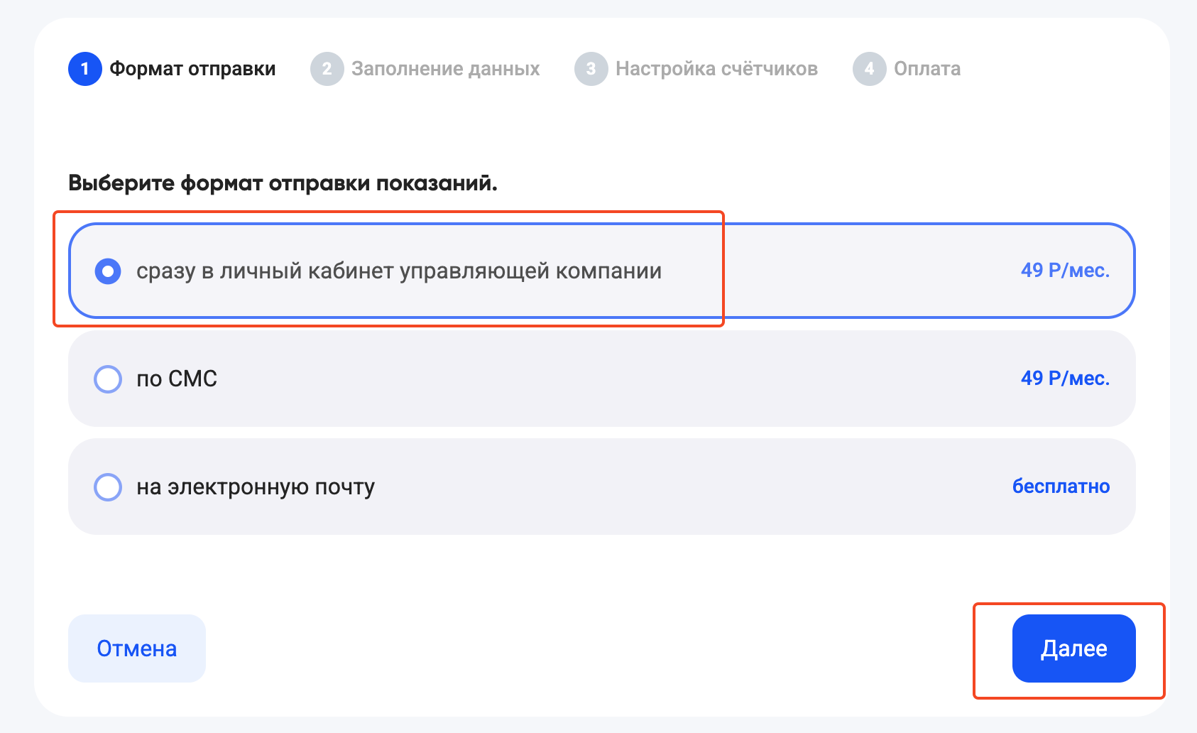 Отправка показаний в личный кабинет УК – платный функционал. Подробности о тарифах можно найти в статье.