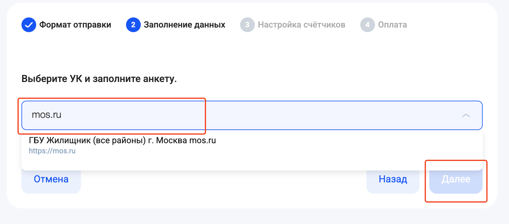 5. Выберите «Сразу в личный кабинет управляющей компании» и нажмите «Далее»